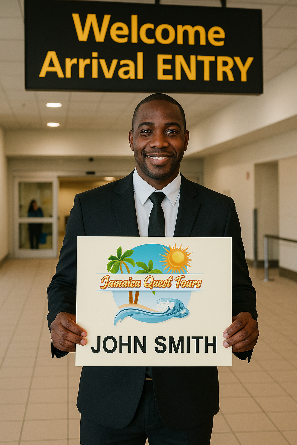Arrival Pick Up Instructions: After clearing immigration and custom head to the arrival hall. Use the first door on the right exiting the terminal at the Information Desk. Once outside turn right behind the barricade your agent will have a “Jamaica Quest Tours” signage. Please identify yourself to the airport agent and she will escort you to your awaiting vehicle for transport. Please ensure you present a hard copy of your confirmation voucher to the agent upon pick-up.